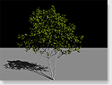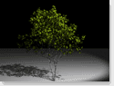 Shadows are a powerful visual cue and do contribute a lot to the appearance especially of trees. Shadows are in most cases created either by Shadow Mapping or by Ray Tracing and there are some problems with both. Shadow Maps are much faster and this is an very important argument especially for objects of high geometric complexity. RenderMan Renderers can create Depth Images which can then be used as a shadow map, but be aware, that the Depth Image File may ignore Opacity of objects so not only the leaf will cast shadows, but the whole Polygon it's made of. PRMan and RenderDotC usually don't have this problem. They ignore parts of objects with Opacity values lower that [1 1 1] in depth images. You can change the treshold with the implementation specific option Option "limit" "ztreshold" [r g b]for both, PRMan and RenderDotC. BMRT doesn't seem to have this option, and so may other renderers. Look up the manual of your particular renderer for details. When you use Xfrog's leaf Primitive this whole issue is not a problem, but when the leaf is mapped onto a Polygon and cut out via opacity (as it is in our example) this may produce too large shadows. When using RayTracing for Shadows (for example with BMRT) you shouldn't have this problem, because Ray Traced Shadows can easily account for transparency. But by default they often do not! You'll have to tell BMRT that it should evaluate the Shader for shadow Rays. You can do this by adding this attribute to the Object: Attribute "render" "casts_shadows" ["shade"]and of course you'll have to enable shadow casting for the lights by setting: Attribute "light" "shadows" ["on"]Here's a test file which add's these changes to the scene.rib from above. [ shadscene.rib ]